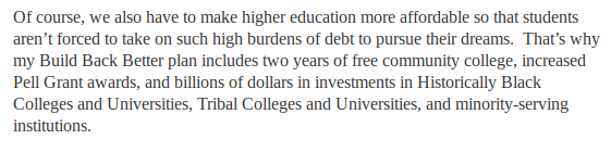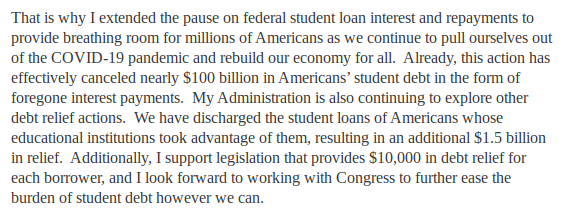 It’s a good start. This opening paragraph makes me feel like maybe the president really understands my concerns and is about to give me good news about his new stance on cancelling student debt. I’m listening…