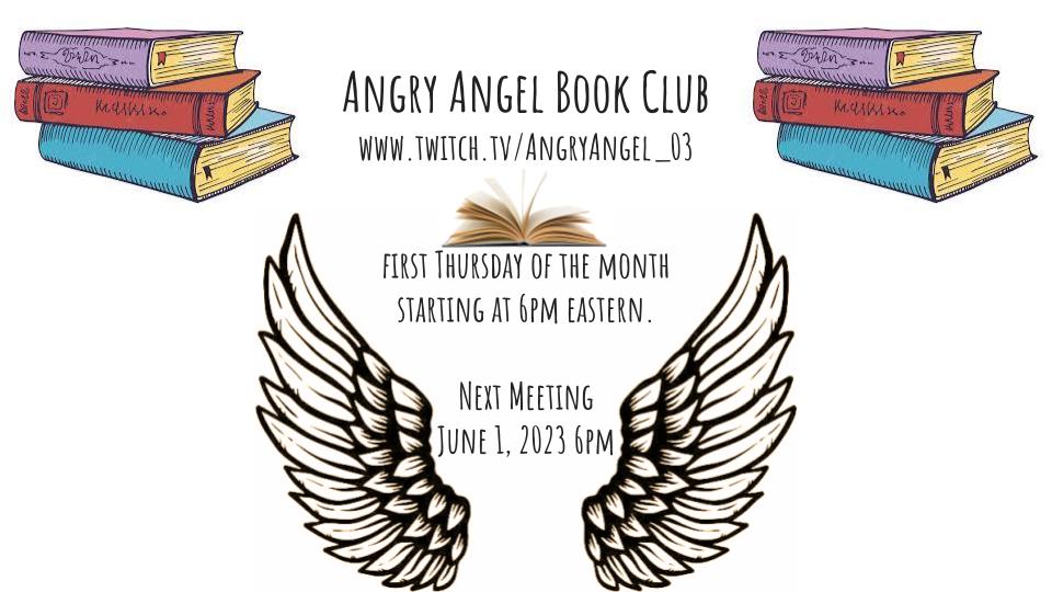 Join me as I lead the second Angry Angel Book Club meeting at 6pm EDT on Thursday June 1, 2023. This third meeting will be an open discussion centered around summer/beach reads: what we like, what we’ve read, and what we would recommend to others. I will be giving recommendations and introducing some of my most recent reads and new releases.